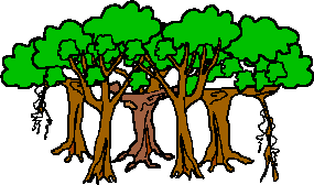 | En skog av et tre | Banyan tre er et figtre som vokser i Sørøstasia og India. Det har flerfoldige grener som vokser ned inn i grunnen slik at de kommer fram se ut som enda et tre. Derfor heter det det gående Banyan tre. Da grenen vokser, sender det ned skyter at eventuelt når grunnen. De blir slik store at de ser ut som en trestamme. Derfor sprer treet seg ved å skape disse nye stammene fra detse grener. | ||||